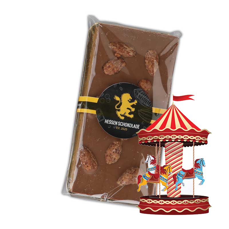 1 Stck. Gebrannte Mandel, Hessen Schokolade, handgeschöpfte Vollmilch Tafelschokolade mit gebrannten Mandeln