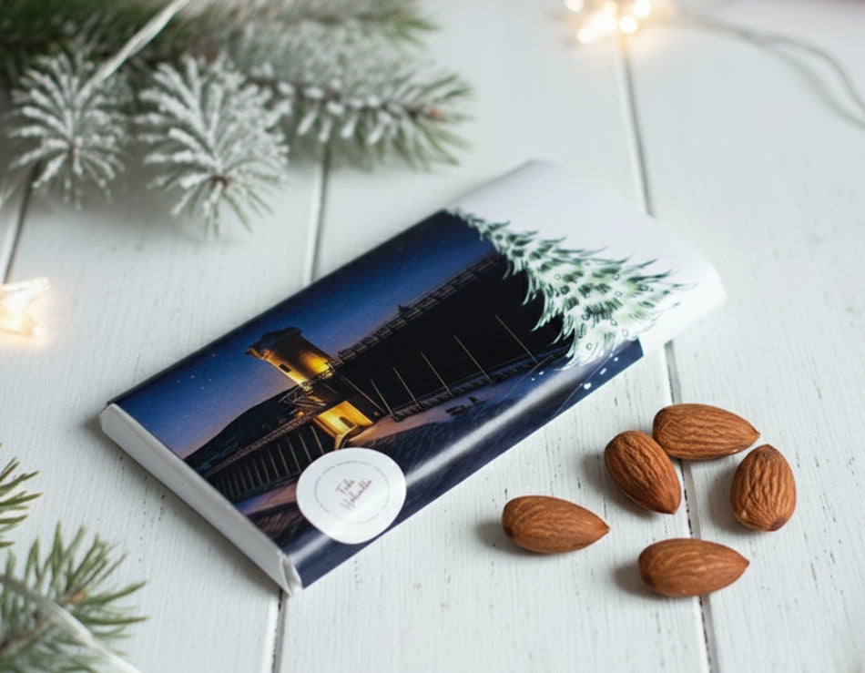Exklusiv für dieses Projekt hat Hessen Schokolade eine auf wenige Stücke limitierte Pralinen-Kollektion kreiert, aber auch diese feine gebrannte Mandeln Schokolade. Handgefertigt, hochwertig und perfekt für die Weihnachtszeit.