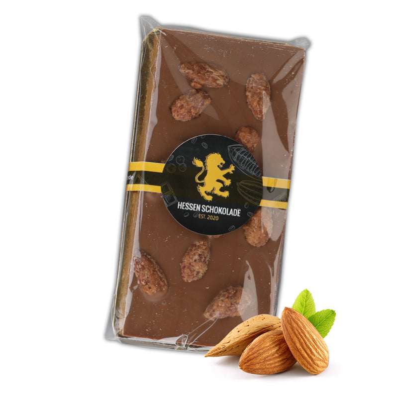 5 Stck. Gebrannte Mandel, Hessen Schokolade® , handgeschöpfte Vollmilch Tafelschokolade mit gebrannten Mandeln