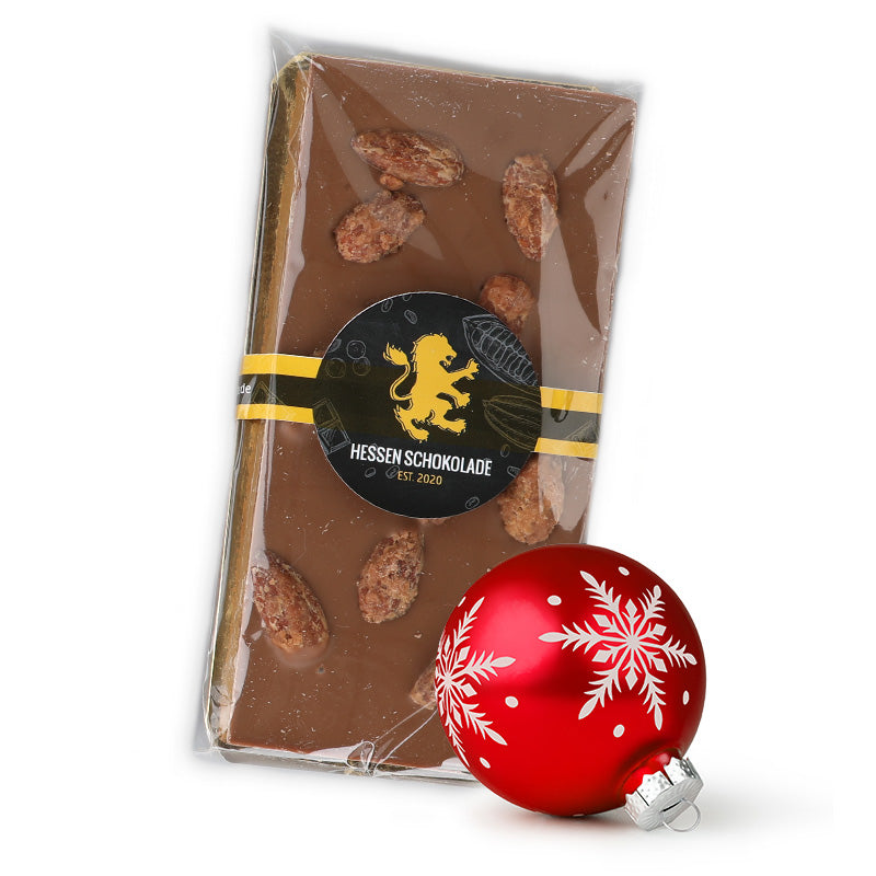 1 Stck. Gebrannte Mandel, Hessen Schokolade® , handgeschöpfte Vollmilch Tafelschokolade mit gebrannten Mandeln