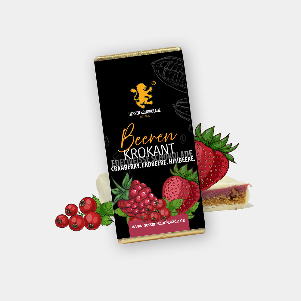 Ein Genussmoment voller Kontraste: Unsere Pralinen-Schokoladenkreation vereint zarten Früchte-Weichkrokant mit der lebendigen Frische von Cranberry, Himbeere und Erdbeere. Knackige Krokantnoten treffen auf fruchtige Akzente sonnengereifter Beeren und verschmelzen mit fein schmelzender Schokolade zu einer ausgewogenen, vielschichtigen Komposition.