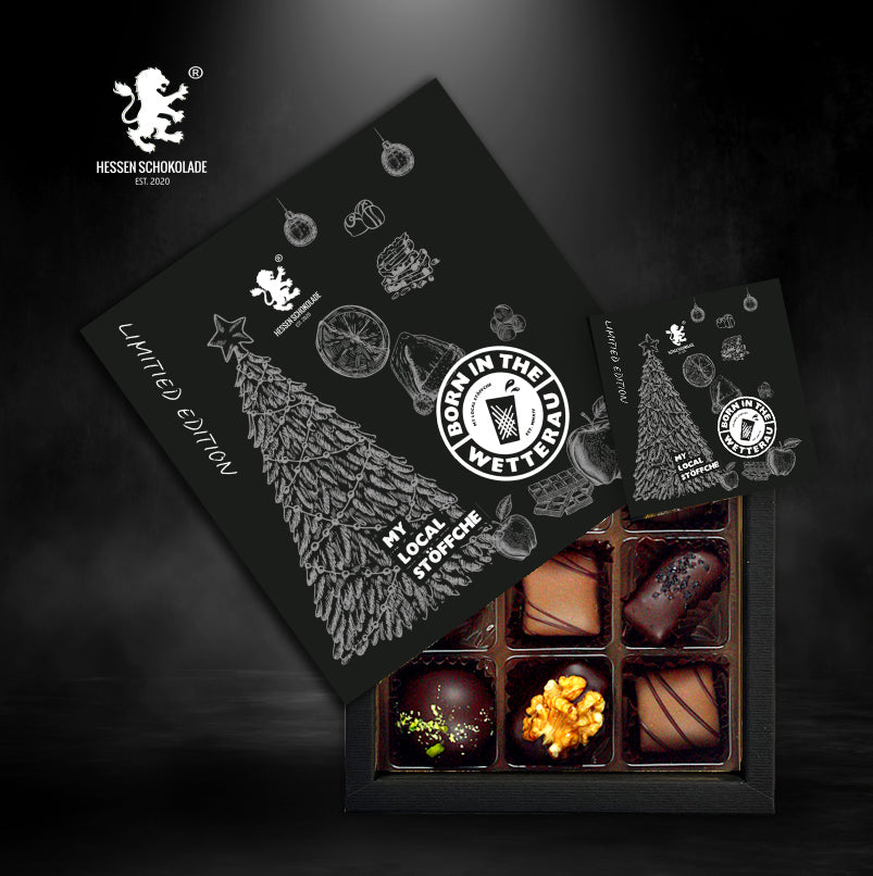 Hessen Schokolade trifft BORN-IN-THE-WETTERAU.Füllung: 9 frische Trüffel und Pralinen - mit Alkohol