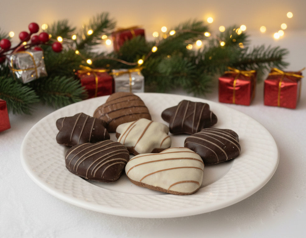 Feines handgefertigtes Elisenlebkuchen Gebäck in 3 Sorten: Vollmilch, Weiss und Zartbitter.