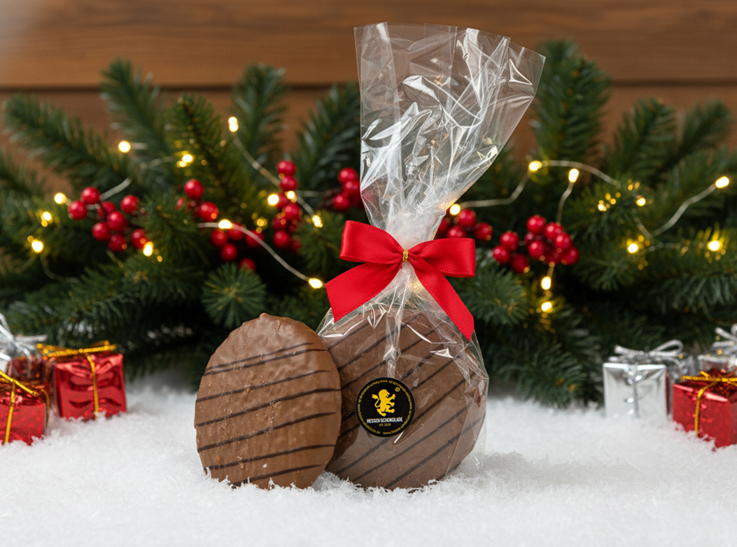 Diese Packung ist als Firmenpräsent individualisierbar. Sie kann entweder in eine hochwertige Banderole mit ihrem Design gepackt werden – oder mit einer Siegelmarke mit ihrem Logo veredelt werden. Dies ist ab 25 Stck. möglich. Sie haben Interesse? Sprechen Sie uns gerne an: hallo@hessen-schokolade.de