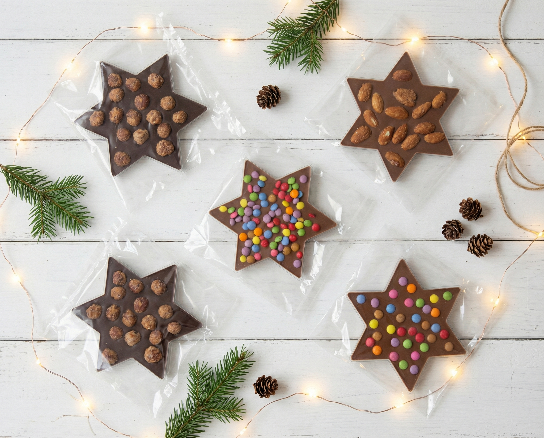 Zucker; Kakaobutter; VOLLMILCHPULVER; Kakaomasse; Emulgator: (SOJALECITHIN); Vanilleextrakt, Magermilchpulver, Kakaomasse¹, Kakaobutter¹, Glukosesirup, Weizenmehl, Molkenerzeugnis, Butterreinfett, pflanzliche Fette (Palm, Shea), Stärke, Emulgator Lecithine, Farbstoff (Betenrot, Carotin, Kurkumin), Spirulinakonzentrat, Überzugsmittel (Carnaubawachs, Bienenwachs weiß), Pflanzenkonzentrate (Färberdistel, Rettich), Gerstenmalzextrakt.